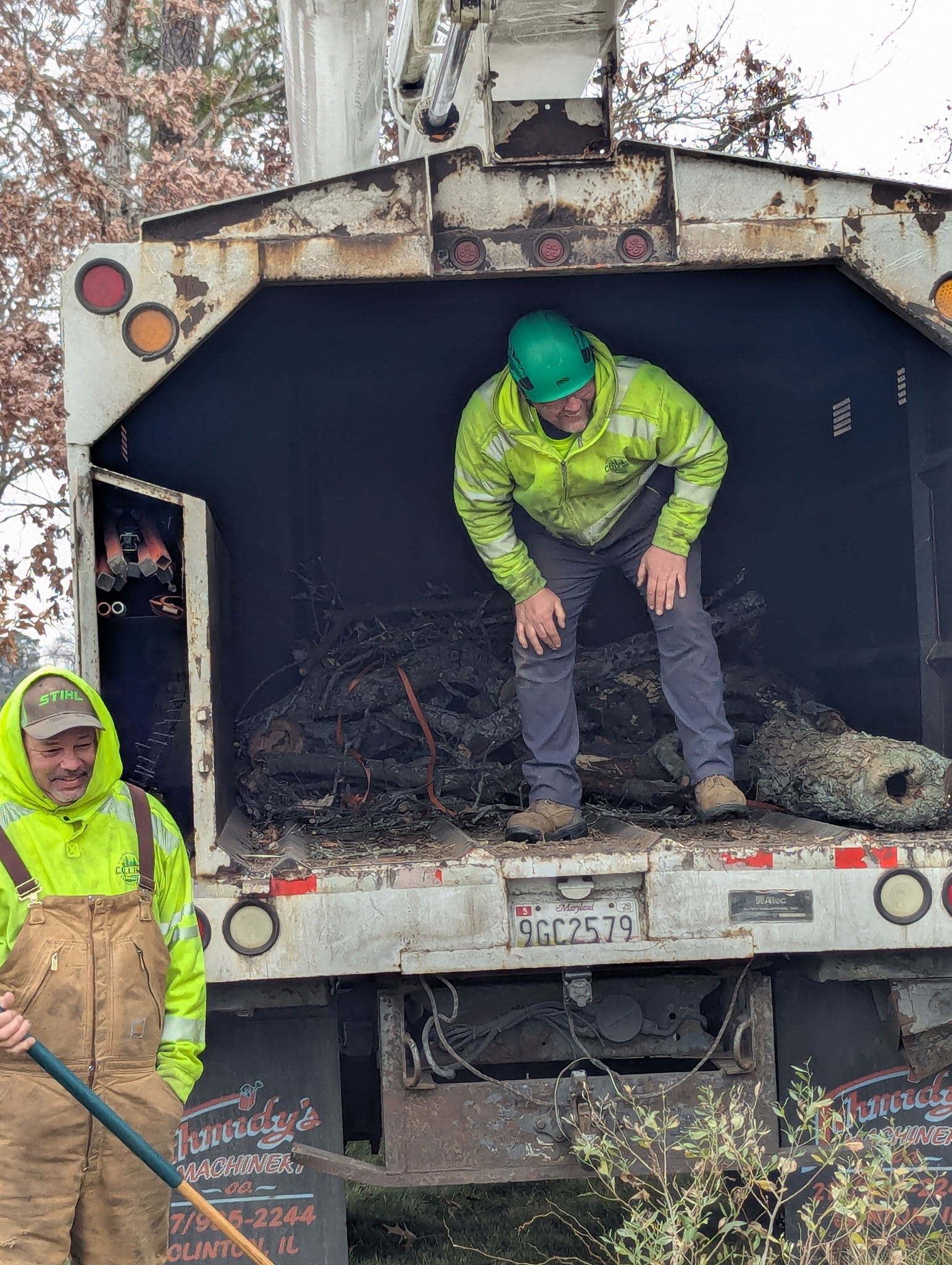 We scheduled the removals for winter for a couple of practical reasons. In the colder months the ground tends to be drier and often frozen, which reduces damage from heavy machines. Winter scheduling also meant less disturbance to the lawn and roots that remained, and it helped keep the site cleaner while we worked.