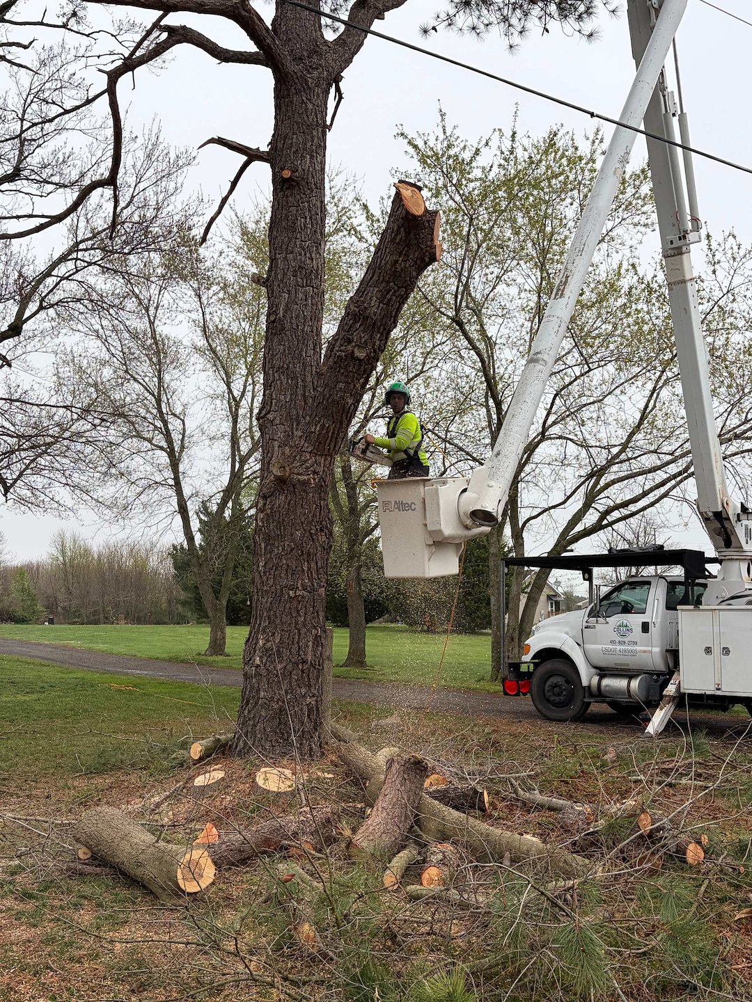 If you have trees growing within 10 feet of your main power distribution lines in Denton, MD, call Collins Tree Experts at 410-829-2799. We can assess whether trimming or removal is needed and we will handle coordinating the required shutdown and scheduling with your power company. Having the proper certifications and experience helps us navigate the rules and logistics so the job is done safely and correctly.