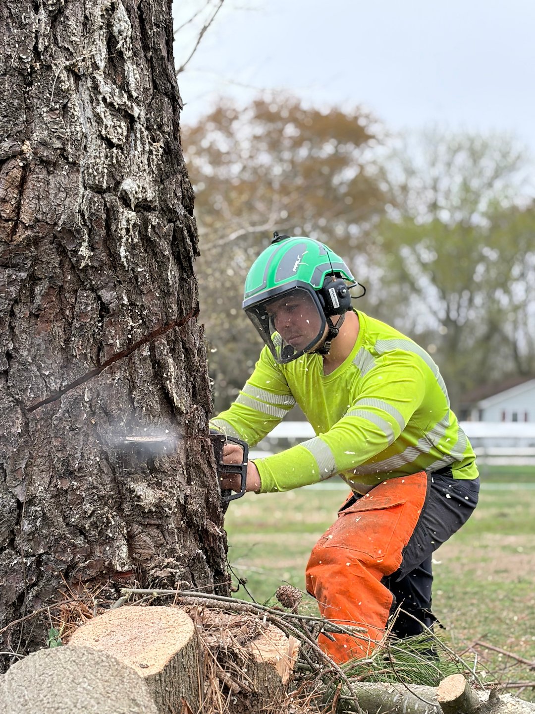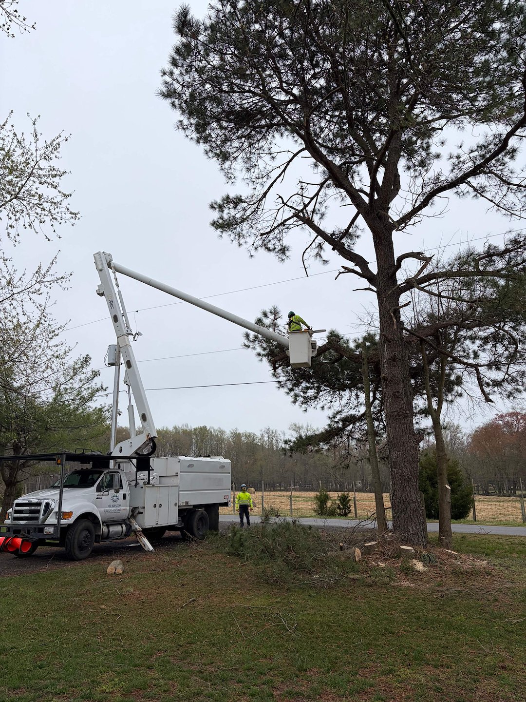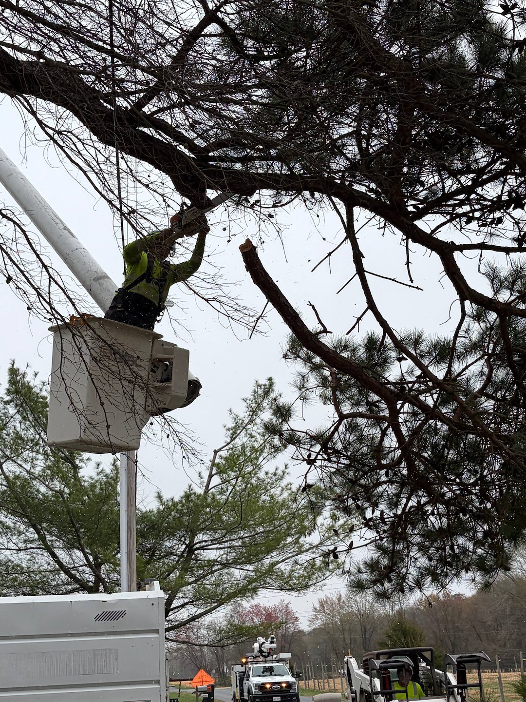 Once the power was shut off, our crew removed the sections of the Pine that were encroaching on the power lines. After the tree was cleared from the line, the power company reconnected service, which allowed us to finish any remaining work and clean up the area. The shutdown was limited to about two hours, minimizing inconvenience to neighbors while ensuring the work met safety and legal requirements.