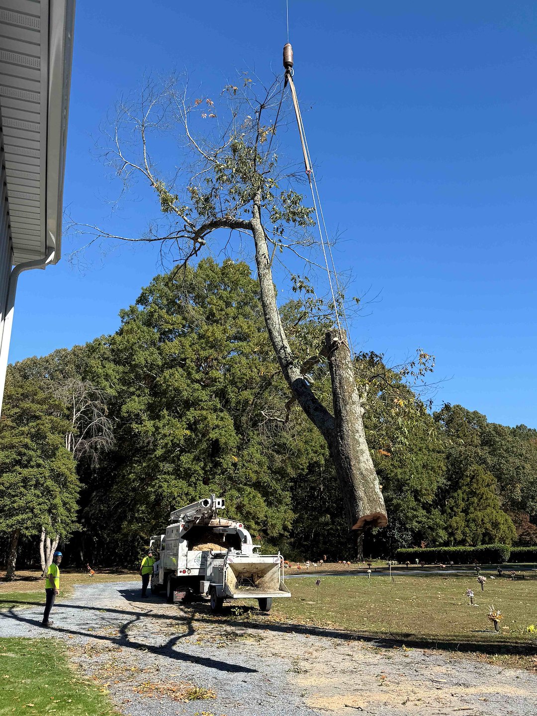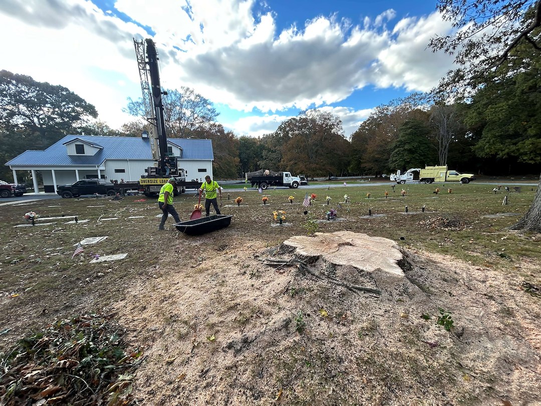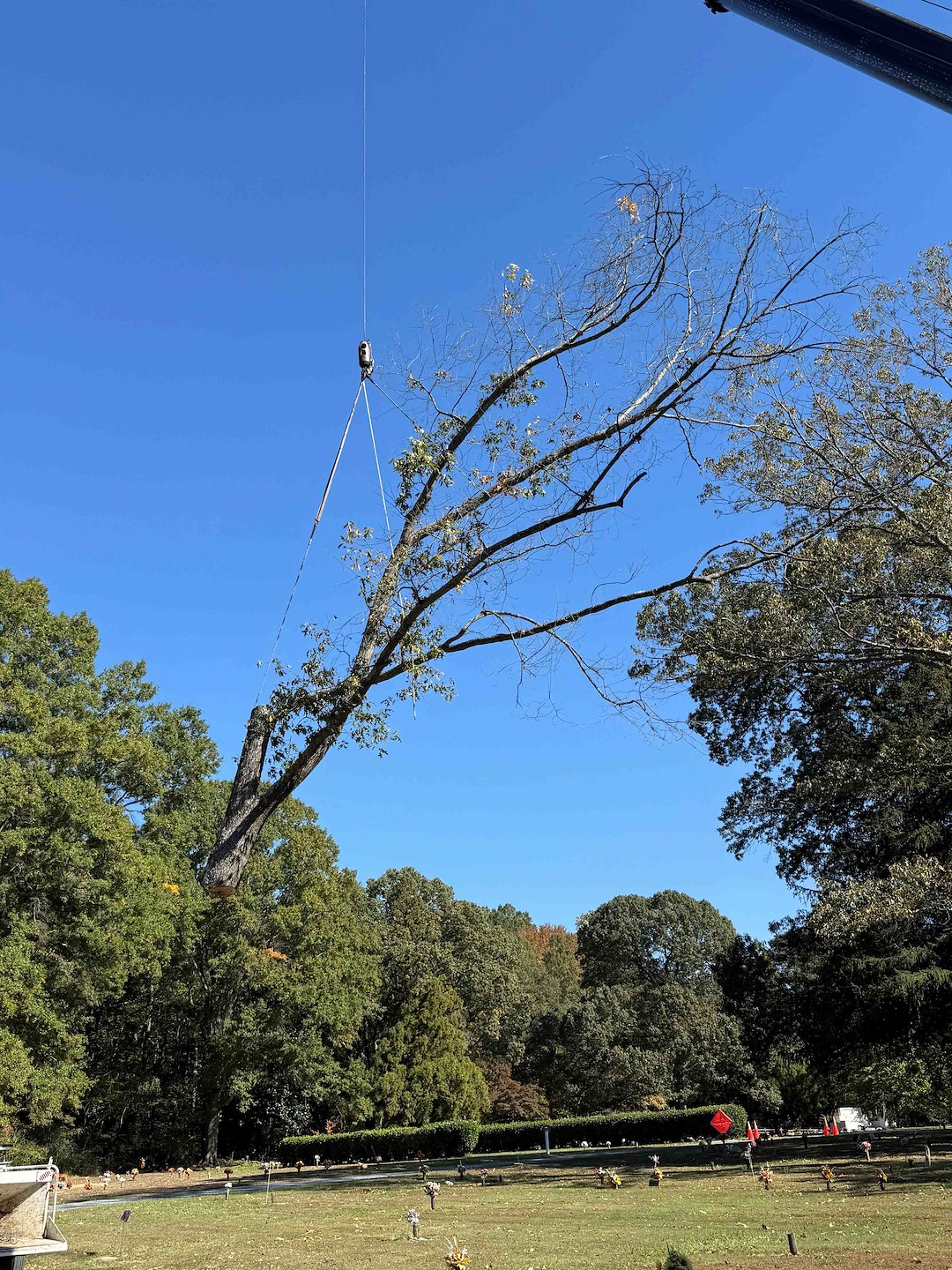 Tree Removal with Crane at Woodlawn Cemetery
